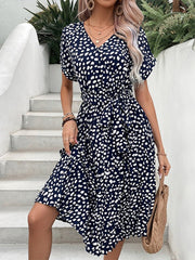 Ladies new raglan short sleeve leopard print dress - Champlain color / S
