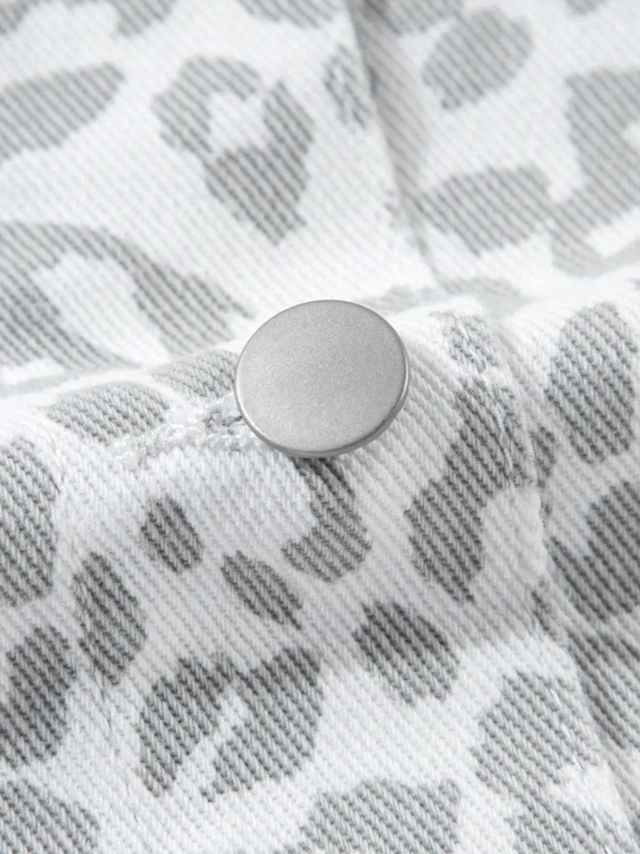 Leopard Button Up Long Sleeve Denim Jacket - White / S