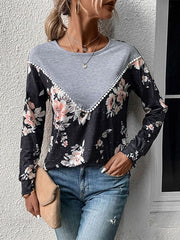 New women's long-sleeved color block sweater thin sweater T-shirt