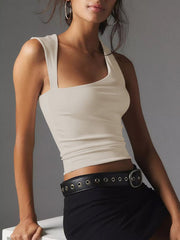 New Y2K irregular neckline top sexy backless slim vest - Cracker khaki / XS