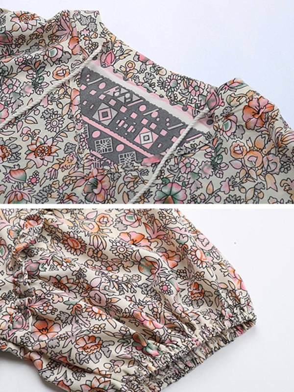 Slim Fit Fringed V-Neck Tie Floral Dress