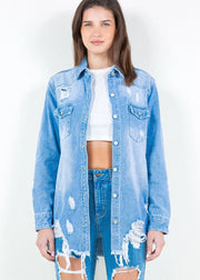 Distressed denim shirt jacket