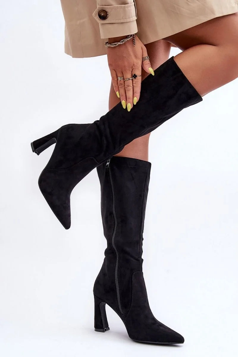 Knee-High Heel Boots in Eco-Suede
