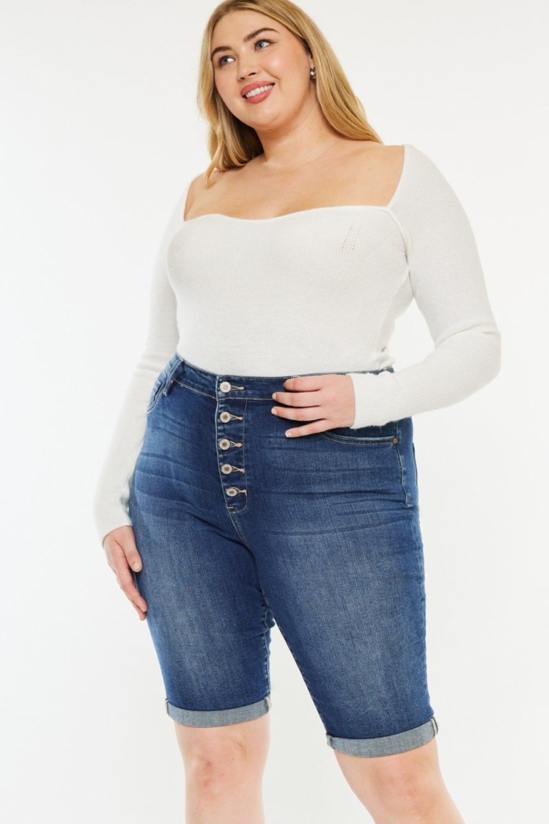 Kancan Full Size Cat's Whiskers Button Fly Denim Shorts