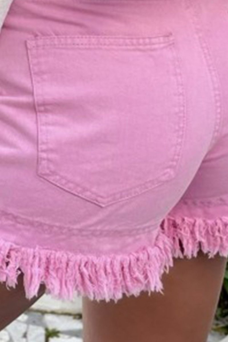 Raw Hem High Waist Denim Shorts - Pink / 10