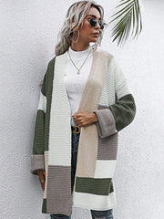 Lazy style thickened autumn and winter long knitted cardigan sweater coat women - Olive green / S