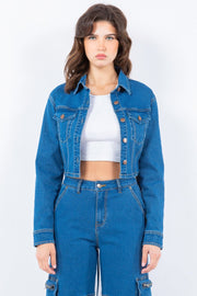 American Bazi Laced Back Cropped Denim Jacket