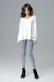 Frill Blouse Long Sleeve Loose Fit - White / S