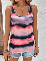 Tie-Dye Scoop Neck Wide Strap Tank - Coral / S