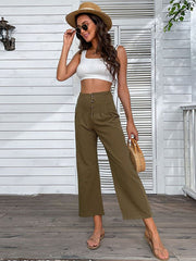 New women's nine-point pants high-waisted cotton and linen slim-fit micro-flared pants - Brown / S