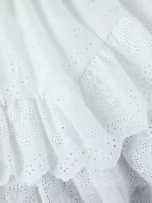 New French lace embroidery elastic waist lace A-line skirt - White / S