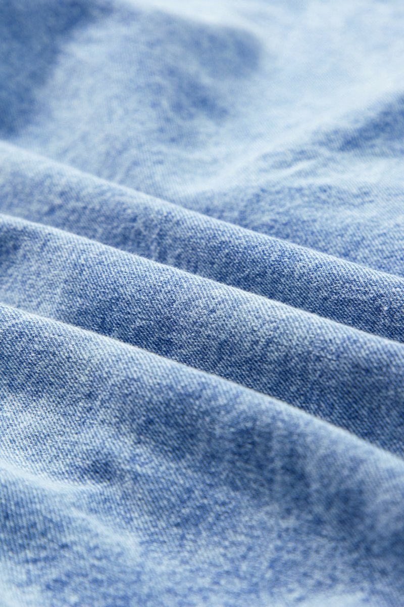 Pocketed Button Up Half Sleeve Denim Dress - Medium / S
