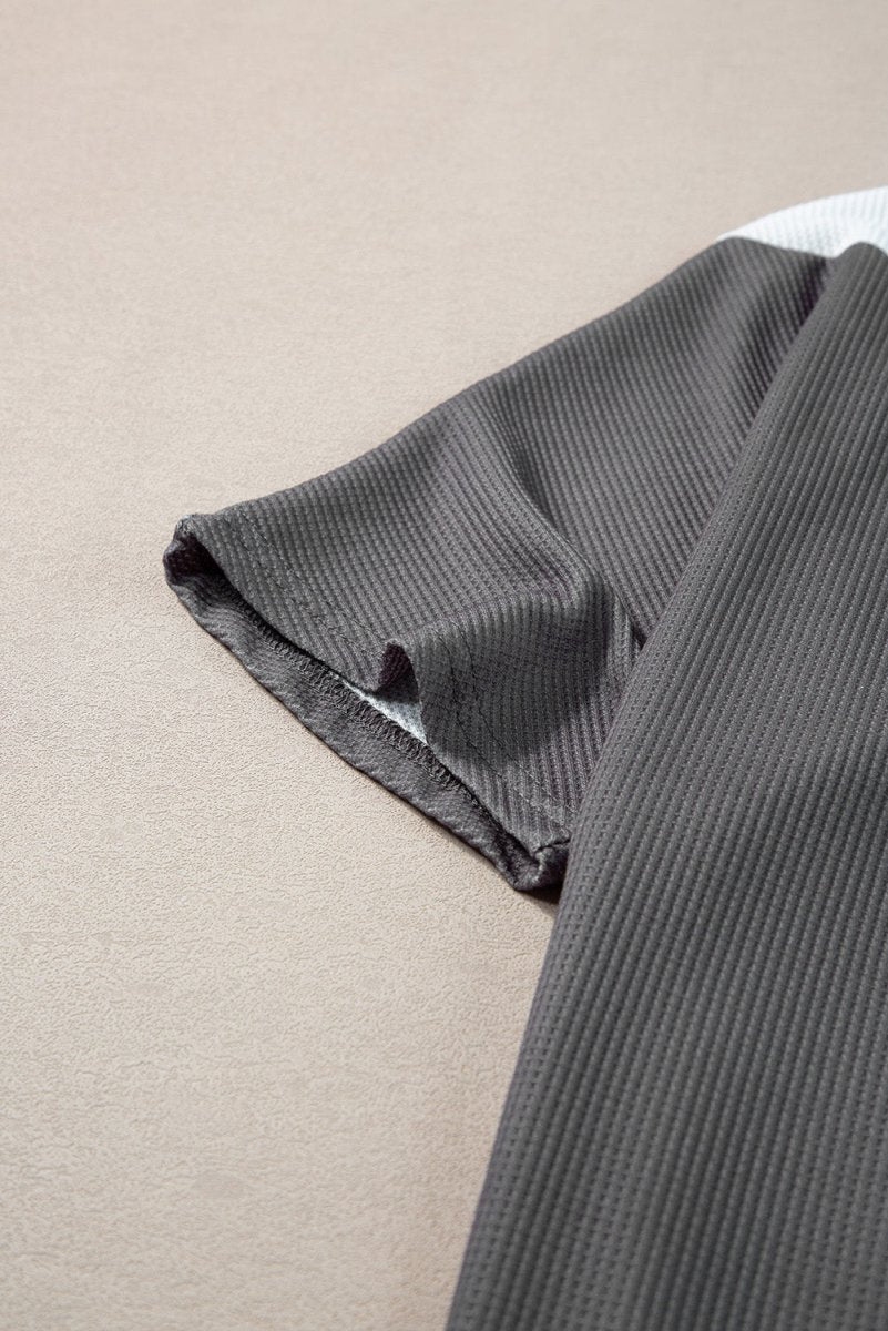 Color Block Round Neck Half Sleeve Top - Dark Gray / S