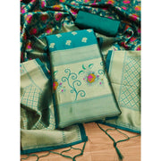 Generic Women's Banarasi Silk Printed Unstitched Salwar Suit Material With Dupatta (Rama, 3Mtrs) - Rama / Banarasi silk / Unstitched Salwar Material With Dupatta