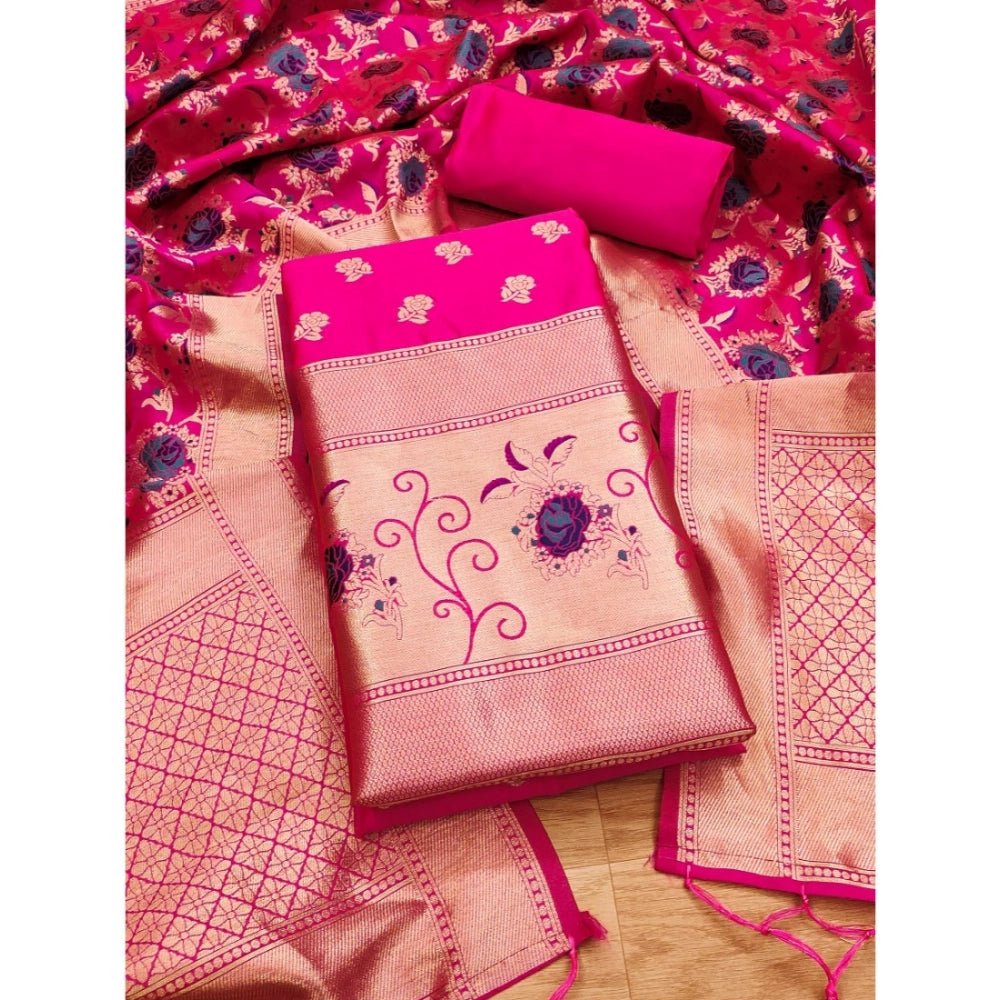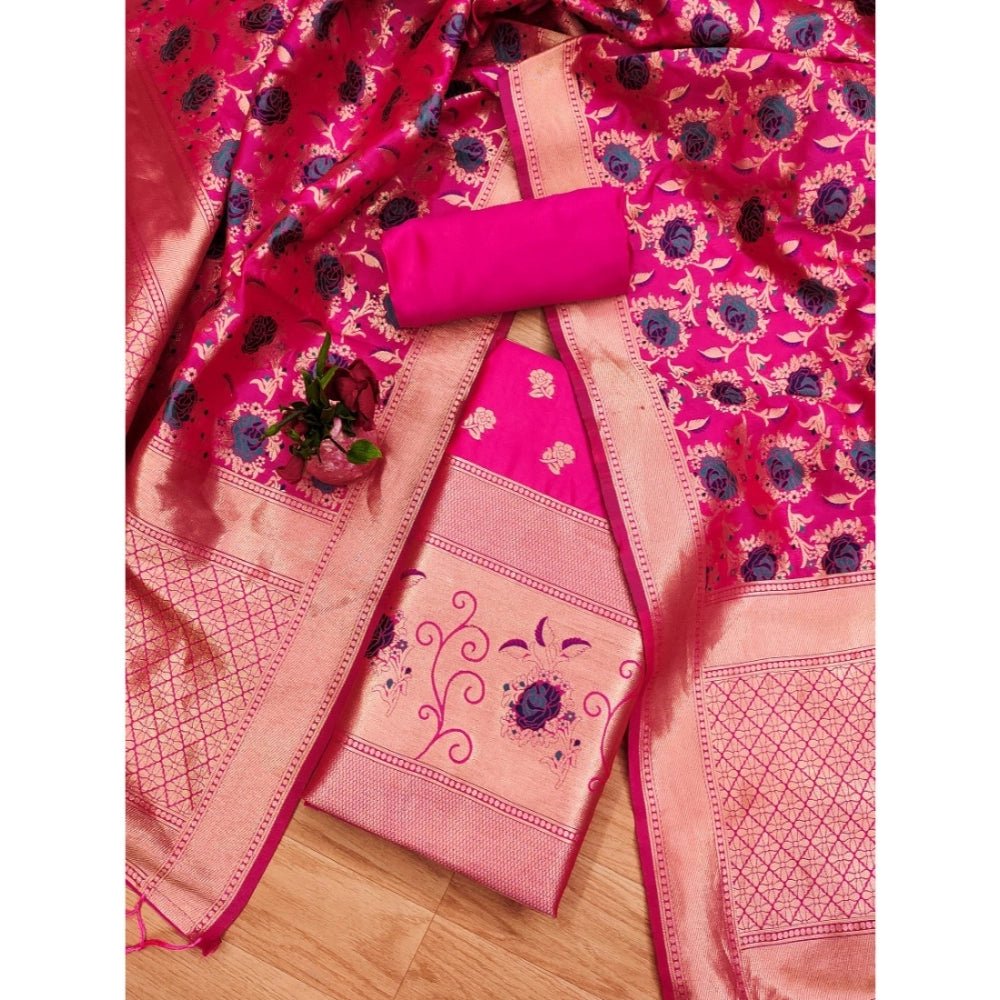 Generic Women's Banarasi Silk Printed Unstitched Salwar Suit Material With Dupatta (Rani, 3Mtrs) - Rani / Banarasi silk / Unstitched Salwar Material With Dupatta