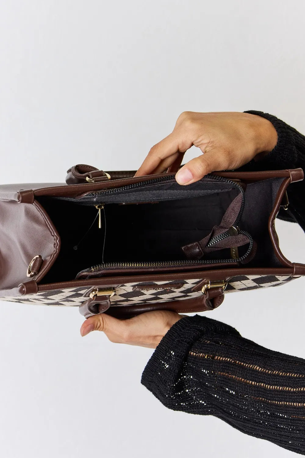 Carry your essentials in style with this chic argyle pattern tote bag.