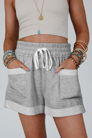 Drawstring High Waist Shorts with Pockets - Gray / S