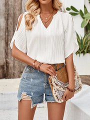 New casual solid color V-neck slim fit hollow top - White / S