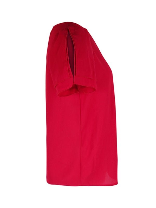 New Fashion Women's Round Neck Short Sleeve Shirt - Wine Red / S