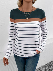 New Women's Striped Casual Long Sleeve Sweater - Green black jasper / S