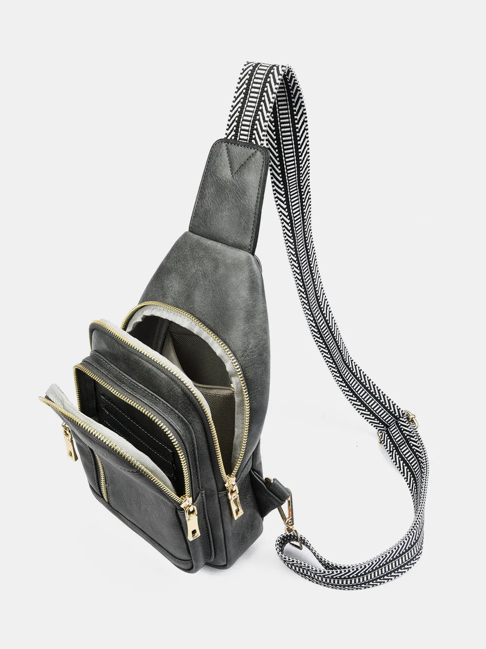 PU Leather Adjustable Strap Crossbody Bag - Beige / One Size