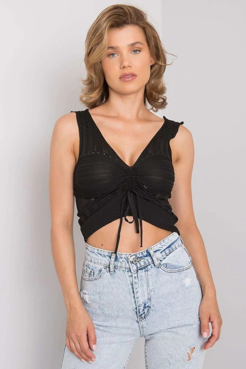 This ribbed knit top features a round neckline and a comfortable, form-fitting silhouette. Made from 100% acrylic, it offers a non-stretch fit.